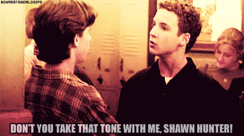 Like all significant others, Topanga got jealous of Cory and Shawn's friendship at times.