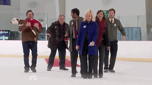 After Tom fails to produce enough red carpet to cover the whole path across the ice rink during a season 4, episode 11, campaign rally, the Knope 2012 team entrance proceeds quite comically. Similarly, during a GOP debate, Donald Trump missed his cue, not once, but twice, as he waited awkwardly at the side of the stage for his name to be called.