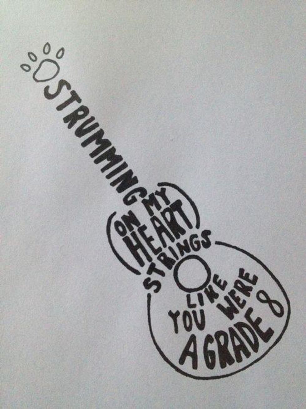 Also from "+," Grade 8 describes a girl who has been "strumming on his heart strings" like she was a "grade 8." In the UK, there is a music exam board called the AMRSM (The Associated Board of the Royal Schools of Music) which scores their exams by grades rather than levels - all the way up to grade 8. The clever lad is essentially saying the girl is an expert on getting him to fall for her. Listen to "Grade 8" here.