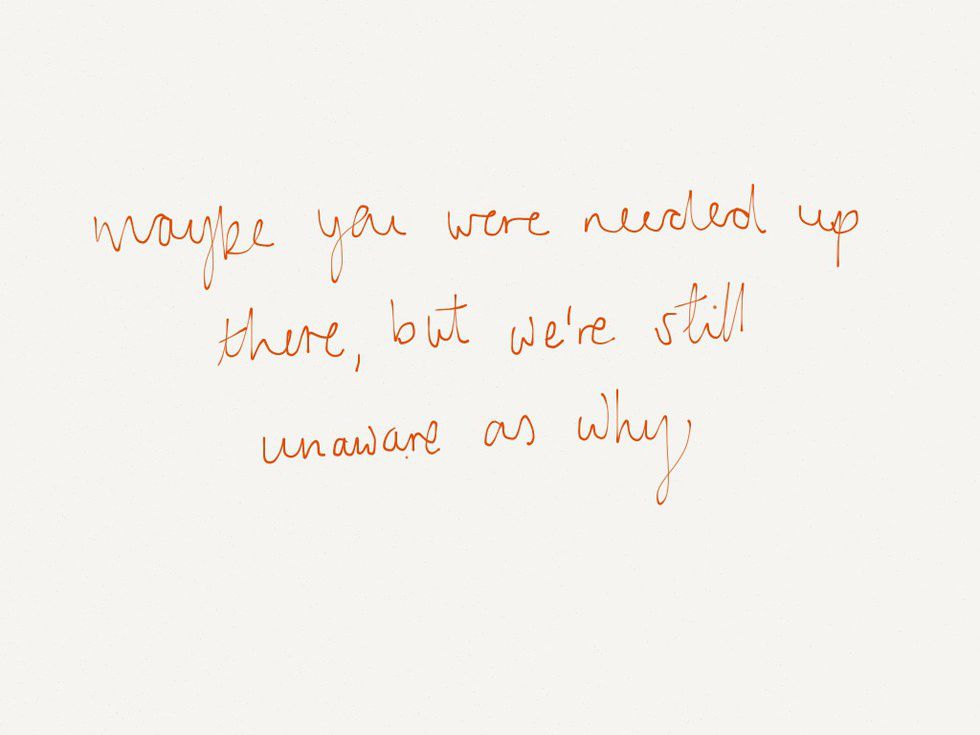 From "x," this sappy love song has many beautiful lyrics, but my favorite is when he proclaims that the girl's soul is "evergreen." Just like an evergreen tree is always there, she is strong and timeless and he is lucky to have basked in her glow, if only even for a moment. Listen to "Thinking Out Loud" and watch Ed's lovely dancing here.