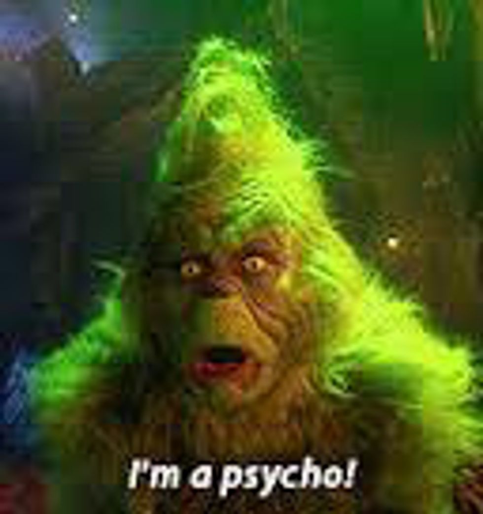 As I have grown up I have come to the realization that I have actually turned into the Grinch, any social interaction takes everything out of me. Every time I watch the Grinch I always seem to yell "same" or "retweet." The Grinch was once my sworn Christmas enemy but has soon come to embody my everyday personality. From eating for no reason to the crazy realization that I feel emotions I wish I could suppress. After watching the movie probably around 100 times I can clearly say I have grown up to be the Grinch.