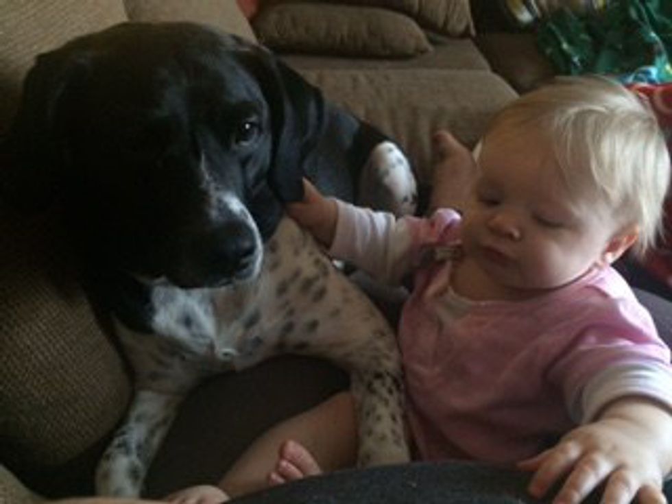 His protectiveness amazes me. He will snuggle up to my niece just to make sure she can't go anywhere without him knowing. His love for her makes my heart happy.
