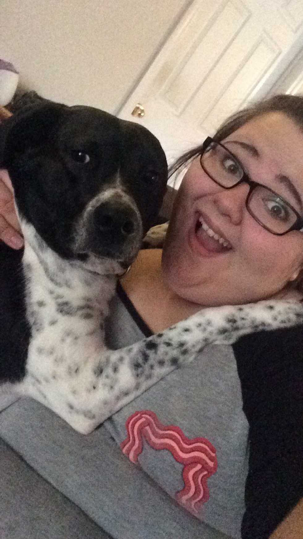 His hugs are the best hugs. Nothing feels better than a hug from your dog even if he does look done in this picture.