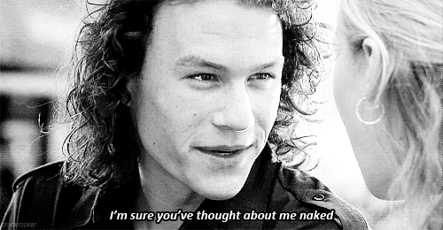 So do yourself a favor and watch "10 Things I Hate About You". I promise Heath Ledger portraying Patrick Verona will make it completely worth it. I mean... just look at that smile.