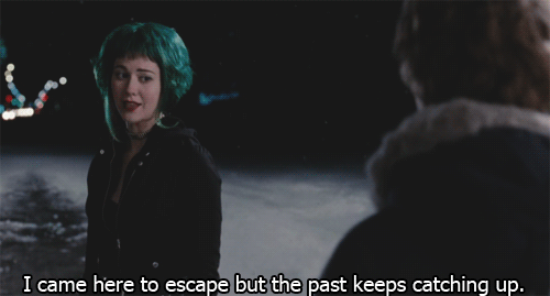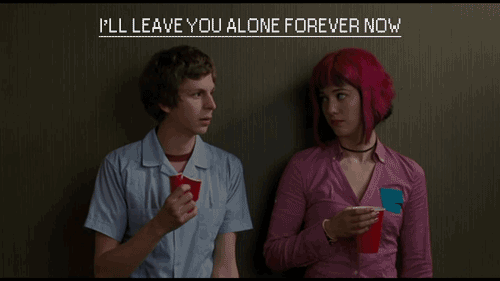 The whole movie is Ramona trying to start over; moving from New York to Canada, forgetting past relationships, and meeting new people, including Scott Pilgrim. It's not easy because wherever she goes, her ex-boyfriends all end in the same spot at the same time. It's just a bit complicated. I have the same issue.