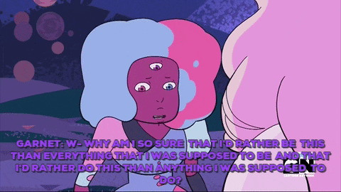 Garnet is a fusion of Sapphire and Ruby and she is literally a walking, talking relationship. Garnet is love incarnate; she knows what's up.