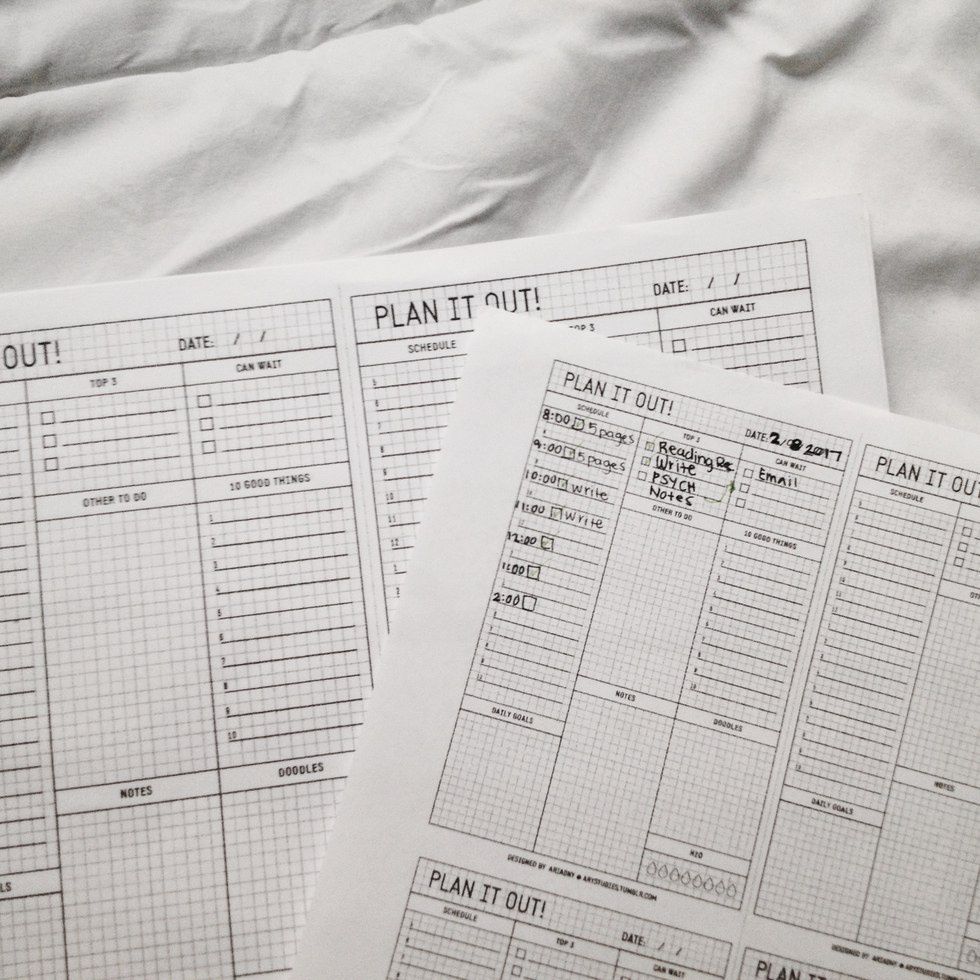 3. Plan it out! Write down everything that needs to be done that day. Printables, such as these, plan out every hour, which if you’re like me, can help you visually manage your time wisely.