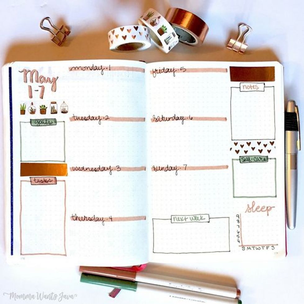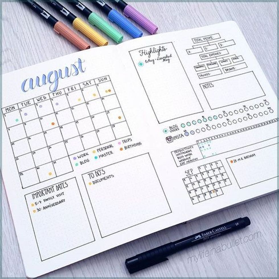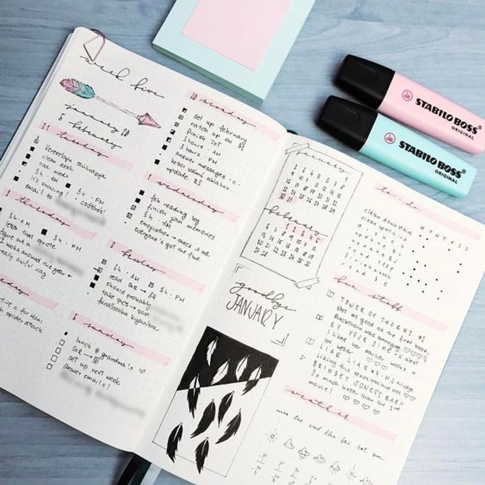 If you're like me then you have a tough time figuring out how on earth to fill a blank page. Chill, don't worry about it; the BuJo should relax you, not stress you out. Go on Pinterest and look up things you would like to include or check out some studyblrs on Tumblr or Instagram.