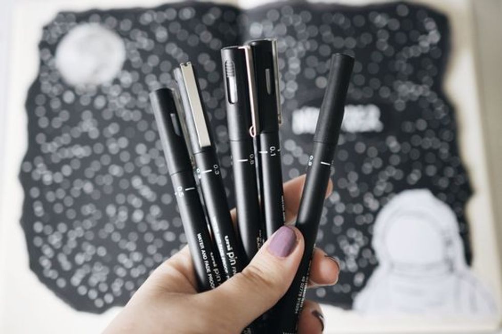 I hope you like stationary as much as I do because oh boy, do I like me some overpriced pens. However, the college budget does not allow for much splurging and if I am going to spend $10-15 dollars, I should probably spend it on some good food and not on inedible ink. Feel free to use any type of pens you might have to lie around- they will all serve their intended purpose but if you want to get fancy, I suggest buying a black Unipin drawing set. The pigmentation is great and they fade less than the Sakura Micron pens.