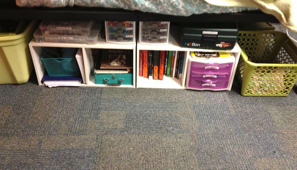 You will not be wearing certain things all year round, so storing seasonal clothes when not in use will make more room for the clothes you do have. Also putting food and your other bedding/towel stuff under your bed will save space in your dorm.