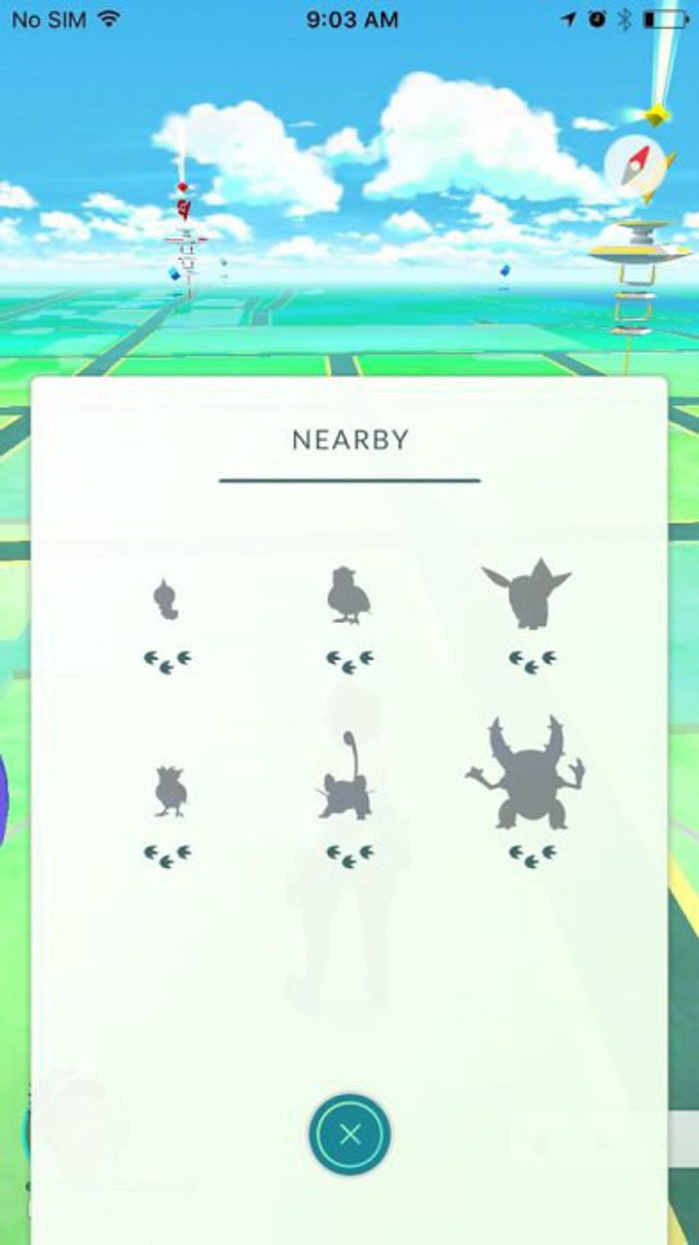 Here's how it works. After you select a Pokémon from your nearby menu, you tap your compass. A small green box will begin to pulse from the nearby box in the corner when you are facing in the right direction. It will pulse more rapidly the closer you get to the Pokémon.