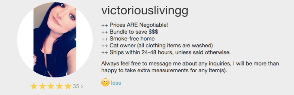 This is one of the most important sections to fill out on the app. This will let your customers know a little about you. Always include if you live in a smoke-free/animal-free house, if your prices are negotiable or not, if you accept swaps/bundles and an estimate on when you will ship out any item(s) purchased. Don't forget to sound friendly!