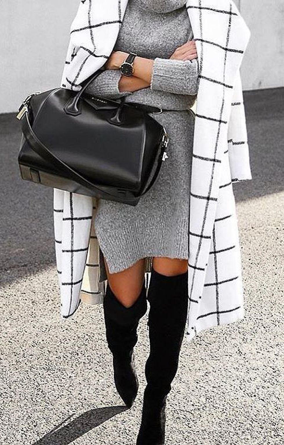 Sweater dresses make the ideal fall outfit for going out. Lighten it up with a scarf, long necklace, and some cute booties and you’ll have the perfect fall fashion trend.