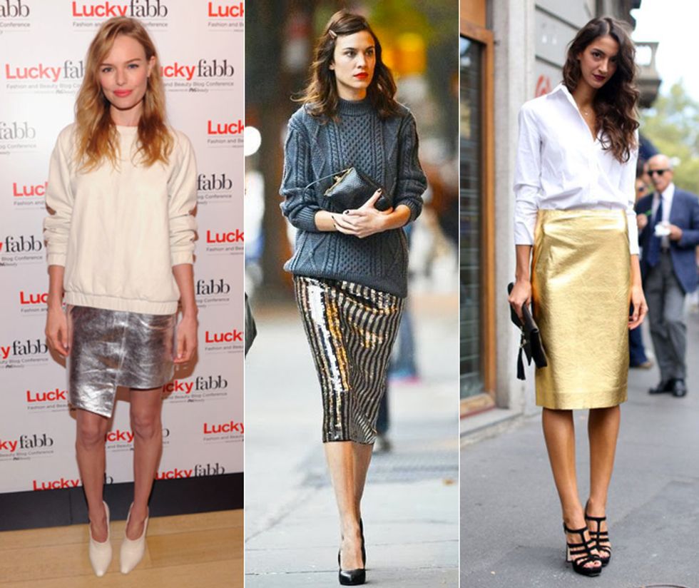 Anything shiny and sparkly was a must-have in middle school. Metallic skirt? Yes. Matching shirt? Obviously. Metallic is beginning to gain popularity again, especially skirts paired with neutral tops.