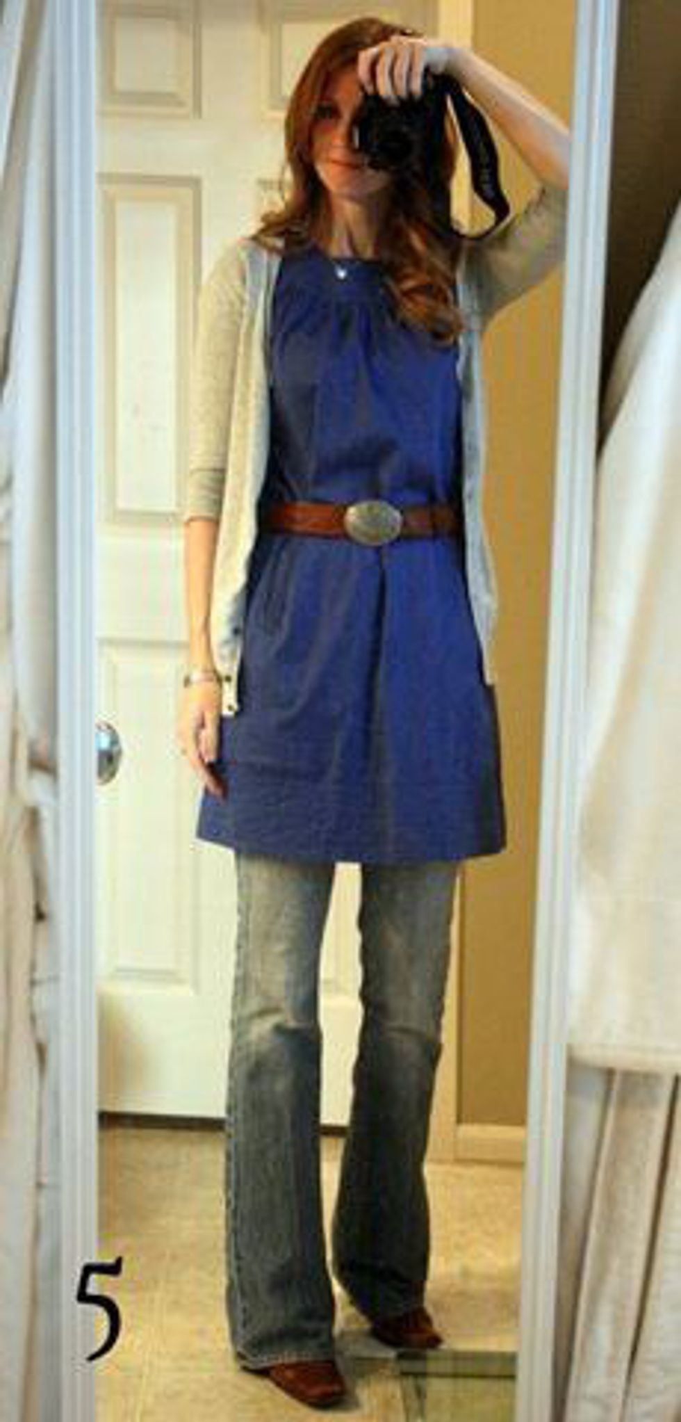 I just don't understand this trend at all. Why were we wearing jeans with a dress...were we trying to hide our legs? I have no clue. But this is just weird.