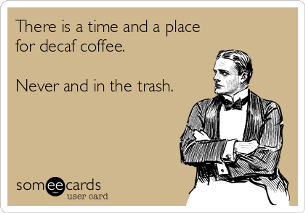 But really, like why? Sure, for medical reasons it’s best to not ingest too much caffeine, but let’s be real—you need it. It is your life source. How else are you supposed to meet every deadline, attend every meeting, write every paper, etc.? Coffee is meant to be caffeinated, so please keep that icky other stuff away from the true addicts.