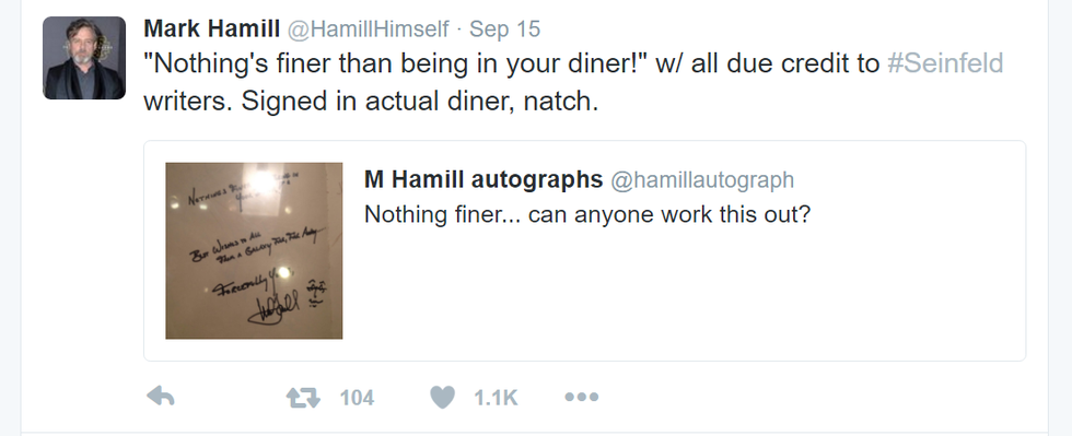 Mark Hamill is well-known for his fantastic work as Luke Skywalker in Star Wars and the Joker in several animated Batman adventures, but he's been making people smile ever since joining Twitter in May of 2011. Here are some of his best tweets in recent months.