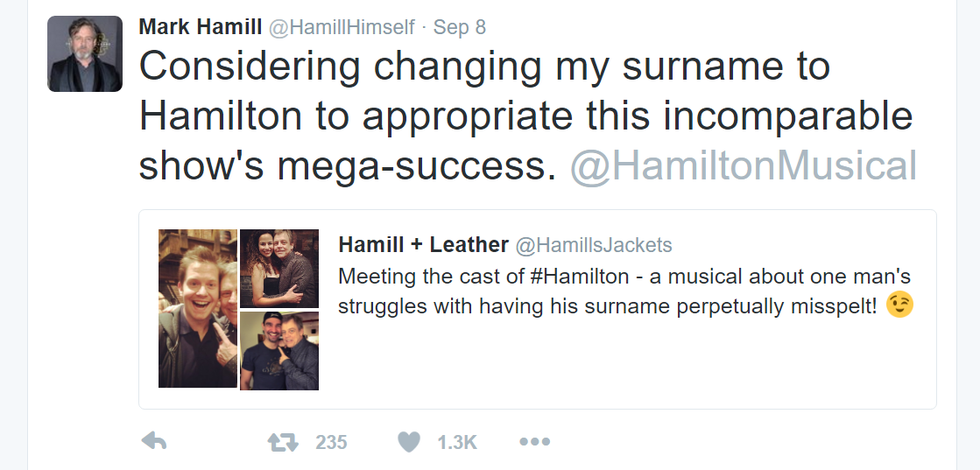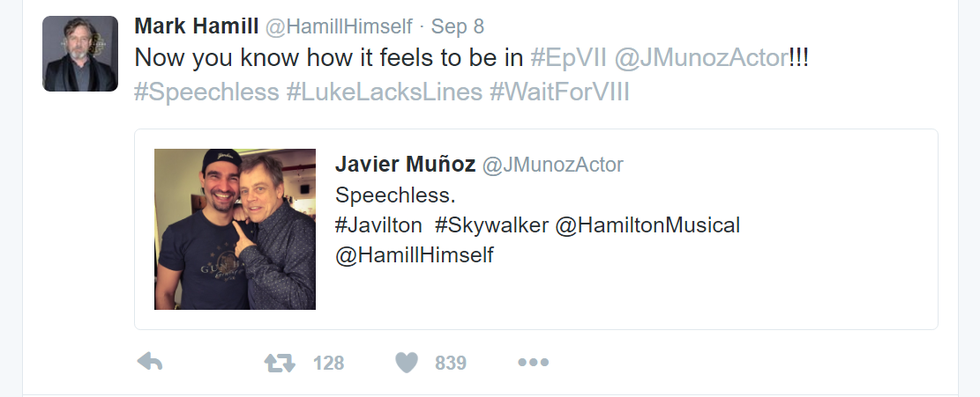 We're all just going to have to take the advice of 'Hamilton' character Aaron Burr and 'Wait For It'... good thing Mr. Hamill's such a big fan! #Hamillton