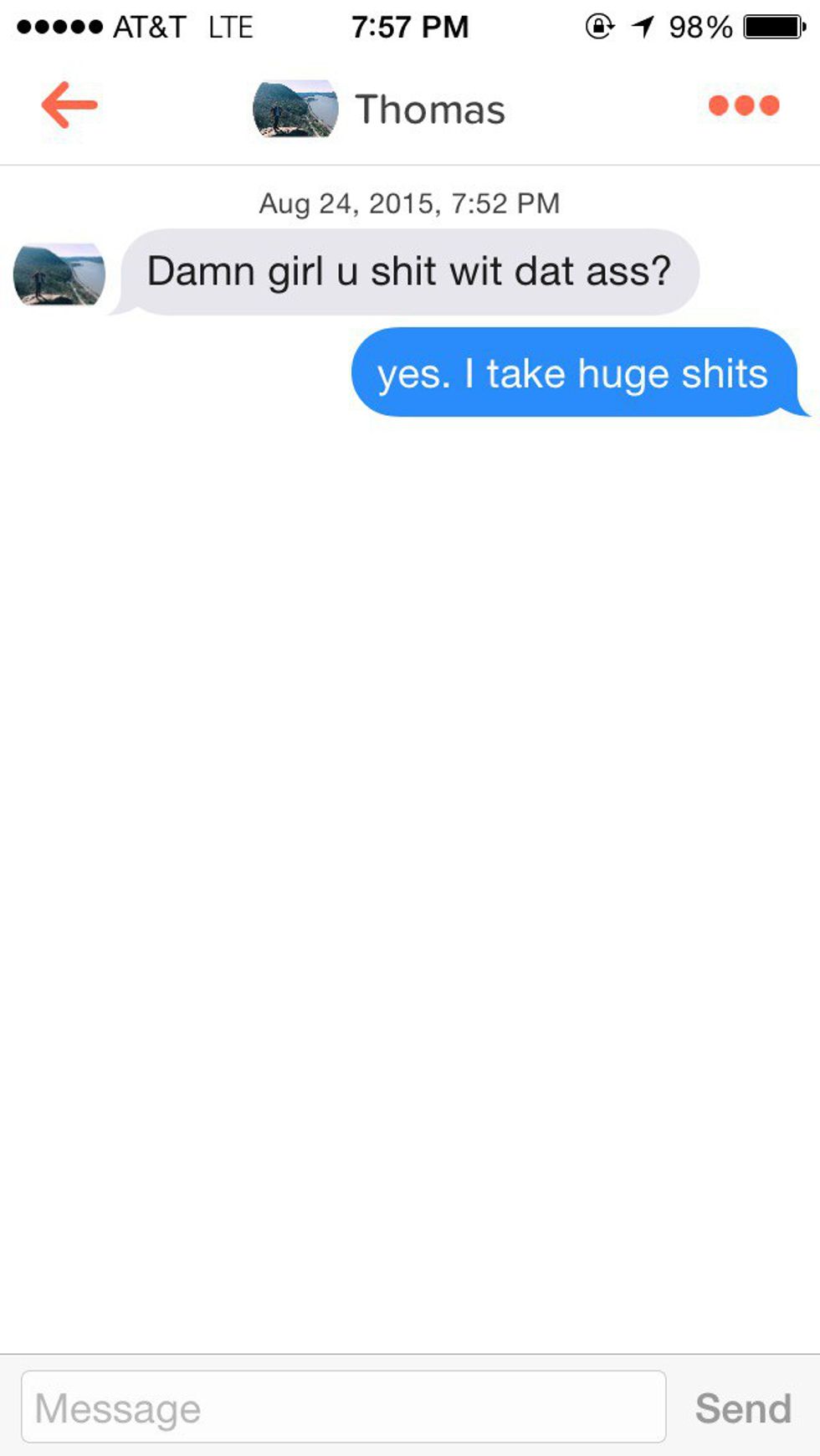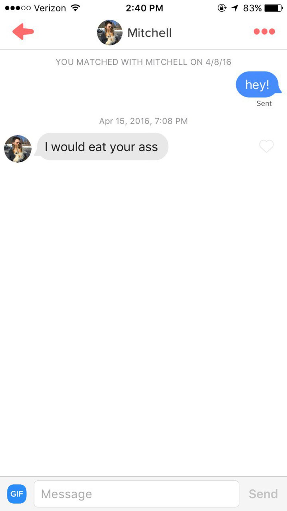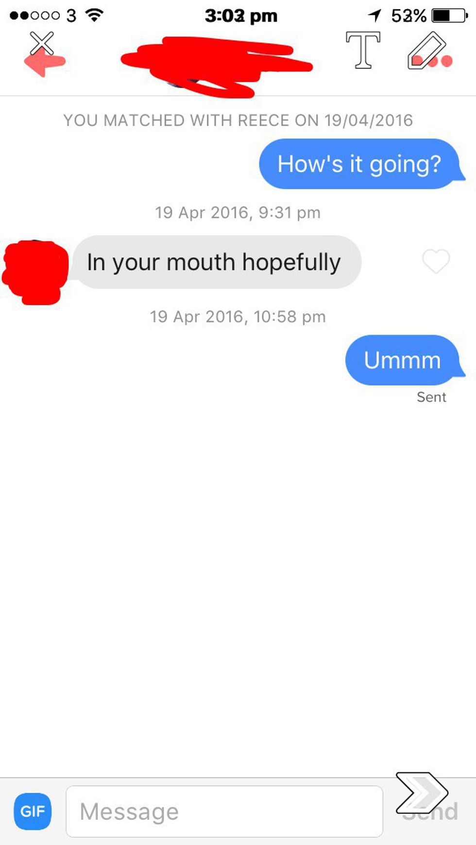 More often than not, you're going to get messages like these and, suddenly, you're wishing you had swiped left and didn't use the Internet at all. Here are 10 examples of the sleazy dudes us girls are going to find in the wonderful world of Tinder. Enjoy.