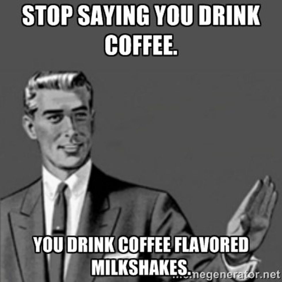 Consequently, after the tea drinkers, there is always the person who is afraid to order actual coffee. Instead, she orders a double chocolate chip frappucino with whipped cream. Maybe if she is feeling adventurous, she will get a vanilla bean with a pump of raspberry syrup. For one, she is having a dessert, not a drink. Second of all, she cannot even taste the coffee because of the added sugar. Her parents must have warned her not to order coffee. Maybe she tried it before and did not like it. I am aware that young girls are not the only culprits; grown men are just as bad. If you are going to be the girl, my advice is to enjoy your drink, but never, ever believe that what you are drinking is coffee.