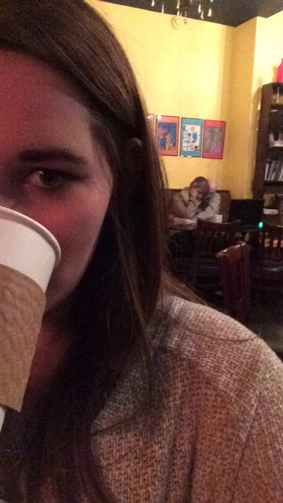 You know. That couple. The two that are so into each other that they stare into each other's eyes and act like no one else is around them and that the universe was meant for just the two of them. Below is an actual photo taken by me at a coffee shop that features me and a couple behind me who was WAYYYY into their own world. There were tears, there was laughter. Truly iconic.