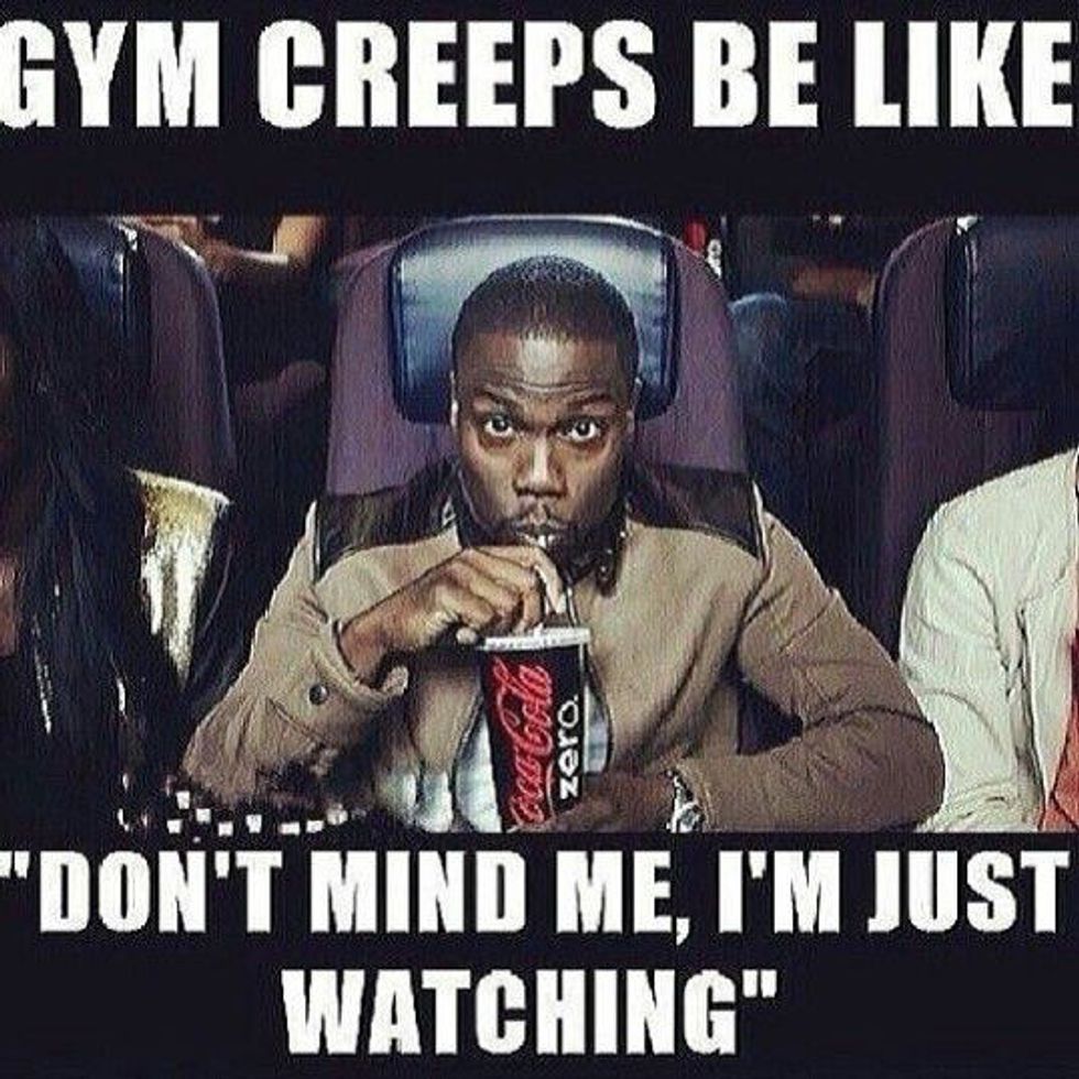 This is the guy you see walking around with IGL (imaginary lat syndrome) who doesn't look like he's ever worked out a day in his life. He walks around the gym and pretends to be on his phone but really he is just staring at you. The Creeper looks at nobody in particular—he will stare at males and females. Then, when you look at him, he will just look away and move on to another victim.