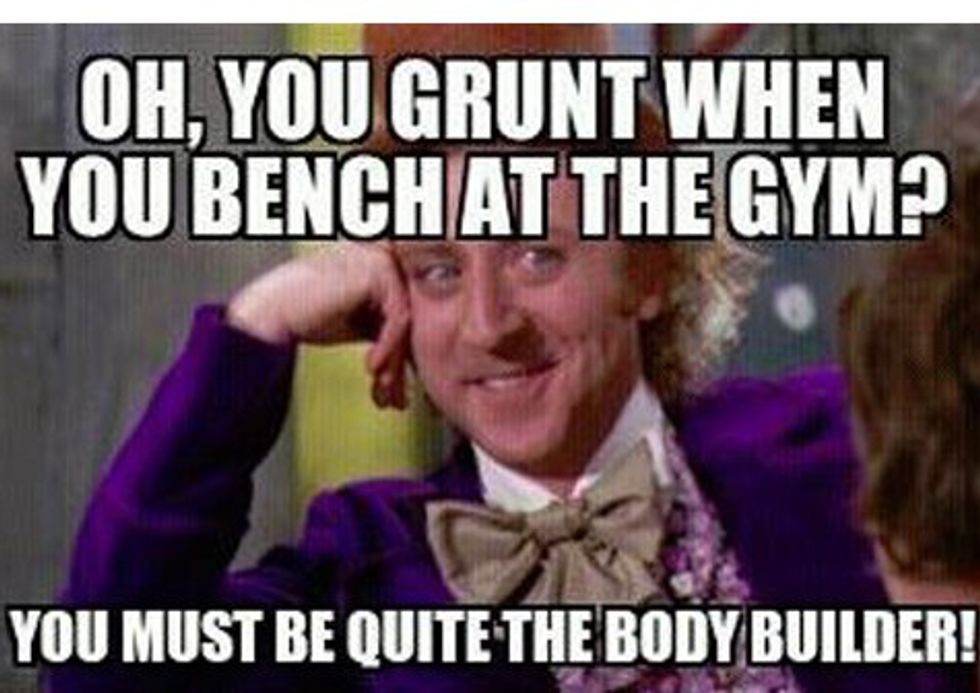 This, my friend, is the call of the Grunter. He is the guy in the weight room that sounds like he is having a bad reaction from Mexican food. You can hear the Grunter from across the gym and maybe into the parking lot. He probably has attention issues and would want every person to be looking at him.
