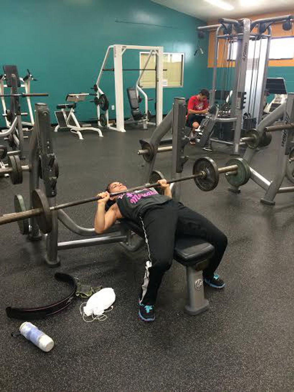 This girl is not like the cardio bunnies or the girl who only wears a sports bra and spandex. She is the girl that walks in with a frat tank and spandex. She knows the ways of the gym and how to work out. She isn't afraid to go into the weight room and be the only girl in there. You know how the Gym Fat flexes in the mirror—well, she does that too.