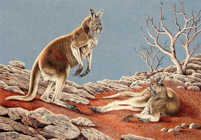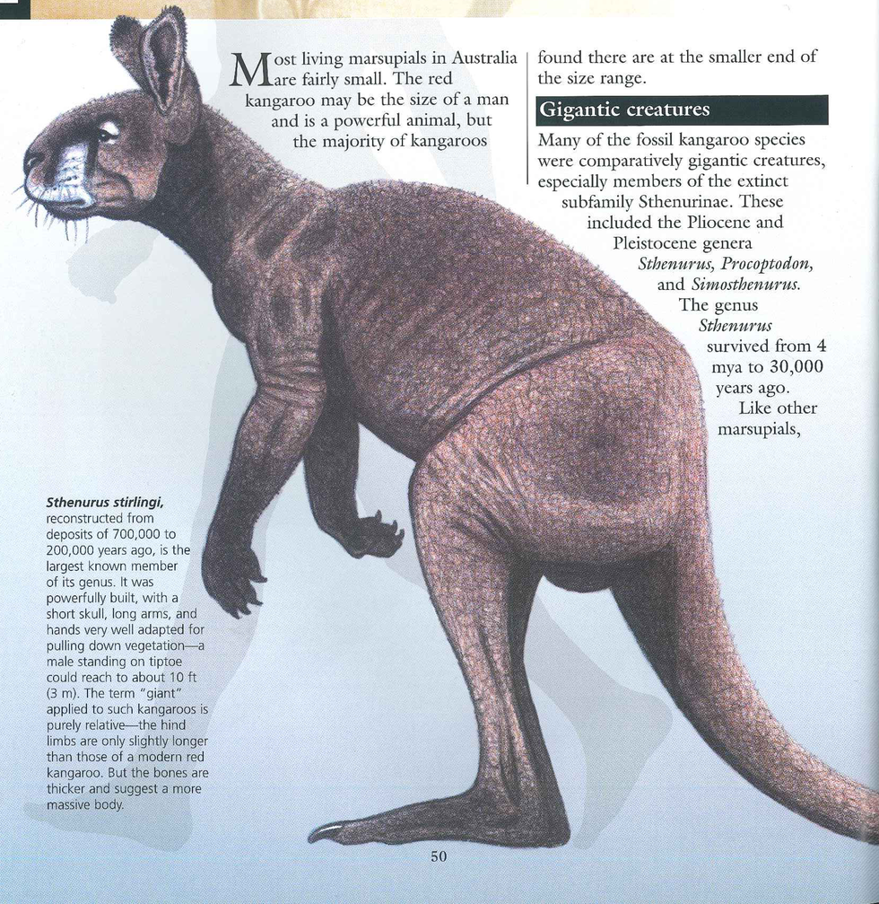 The giant kangaroos of the genus Sthenurus were some of the largest kangaroos to have ever existed. They lived in Australia and the largest reached sizes twice those of modern day kangaroos. They are also known as "short-faced kangaroos".