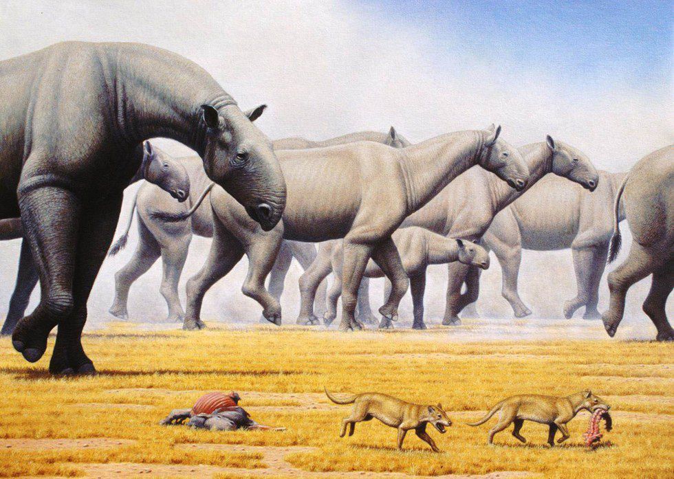 Indricotherium transouralicum is the largest known terrestrial mammal. It was part of a genus of hornless rhinos. These animals lived in Eurasia and reached more than 18 ft (5.5m) in height, weighing more than 15 tons.