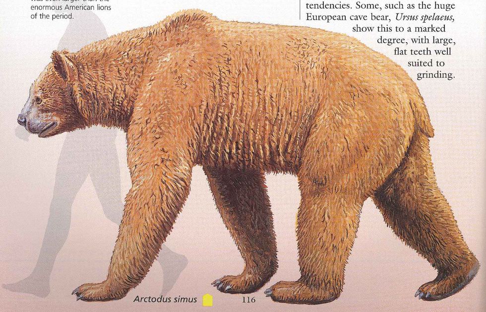 Arctodus simus is one of the largest bears to have ever existed. It is known as "the short-faced bear" and lived in North America. It might have been faster and more aggressive than most predators.