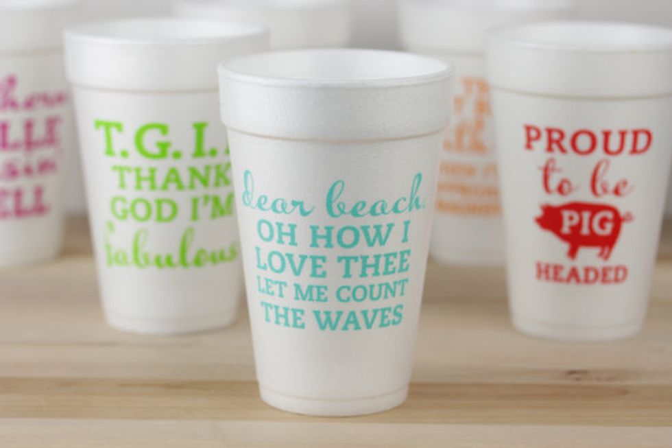 These cups are available in countless designs (okay, not countless; I just didn't want to count them all... there are a lot) and they're perfect for a day on the lake, or a summer party. Get a pack for $7.00 from IncrediblyCharmed on Etsy here, and bring on the sweet tea!