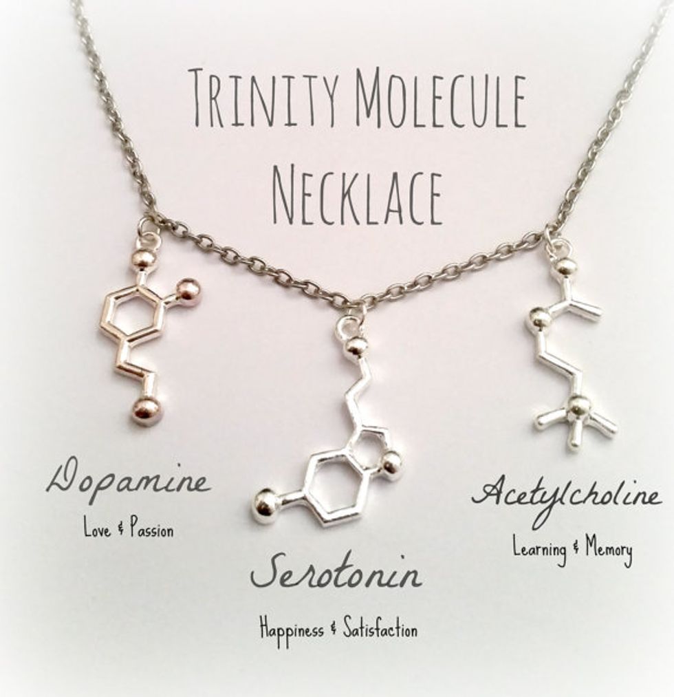 This is a jewelry trend that's pretty popular on Etsy right now, and in general is relatively inexpensive as well. I can personally recommend Molecular Motifs, a shop on Etsy if you are interested in purchasing a jewelry like this. There are different styles as well, so if you want something more feminine or masculine or what have you.
