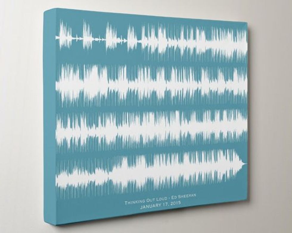 This option is a little more pricey, but if there are any music lovers out there, this is perfect. This Etsy shop is called ArtsyVoiceprint, and they have several song posters ready to ship. They make posters, but also cards and several other things as well. They can even do custom projects as though. If you send them an audio recording of your own they can create a print of that!