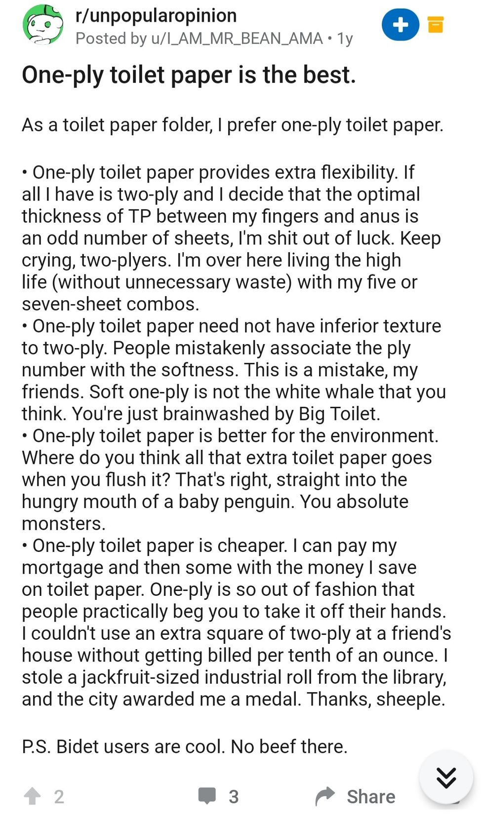 Recently, Reddit's subreddit "unpopularopinion" has been filled with general opinions. I set out to find the ones that make me really go, "gross."