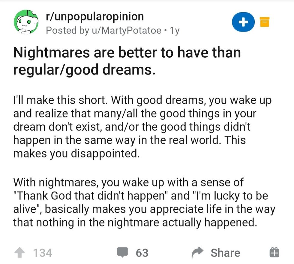 Nightmares are better than good dreams