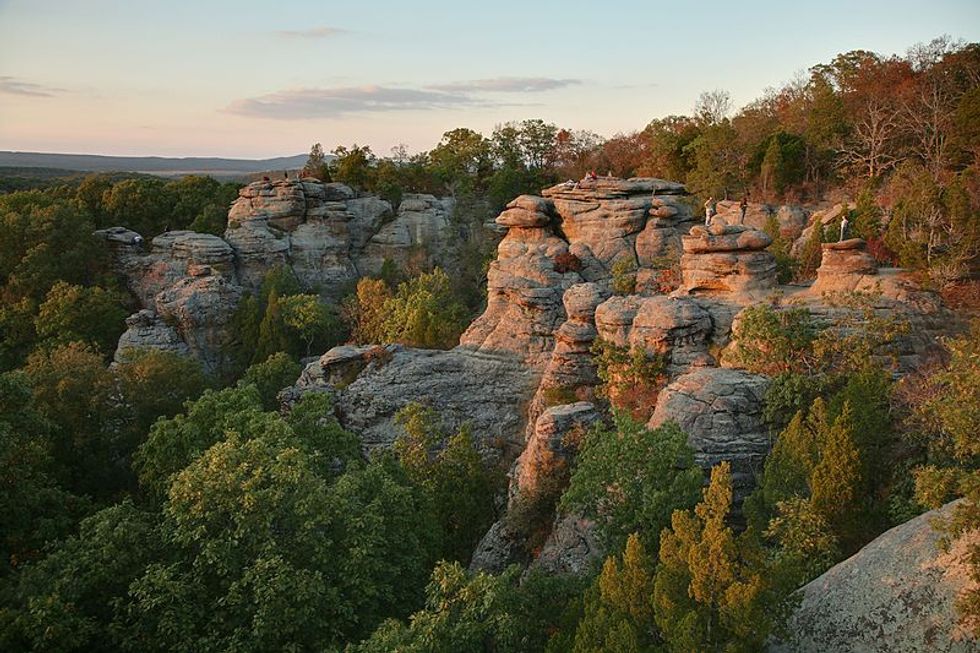 Wind and rain are the ones to blame for creating this beautiful place. The wind and rain chiseled away at the large deposits of sedimentary rock. The Garden of the Gods is located in Shawnee National Forest in Illinois.