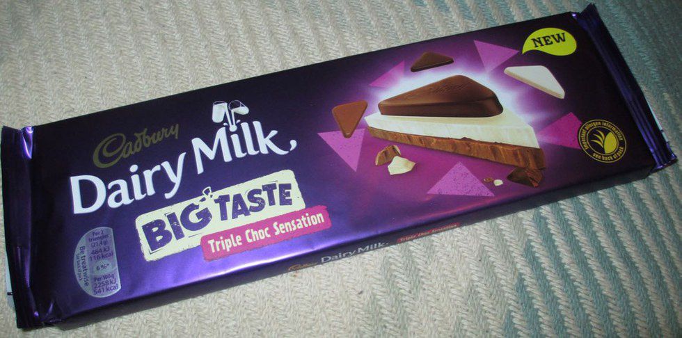 The big taste bar contains creamy white, milk, and dark chocolate flavors for a triple chocolate sensation. It's crafted from dairy milk, which boosts its smooth texture and allows it to melt in your mouth. The best part? The bar's large size makes it great for sharing –– or keeping to yourself for a couple months.