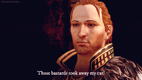 A sweetheart mage who loves cats and heals people. How can you go wrong? Well, there was that blowing-up-the-Chantry thing, but it's not like they didn't have it coming. He may be a fugitive, but he'll make your heart flutter with his romantic words. Also, the guy's got sass.