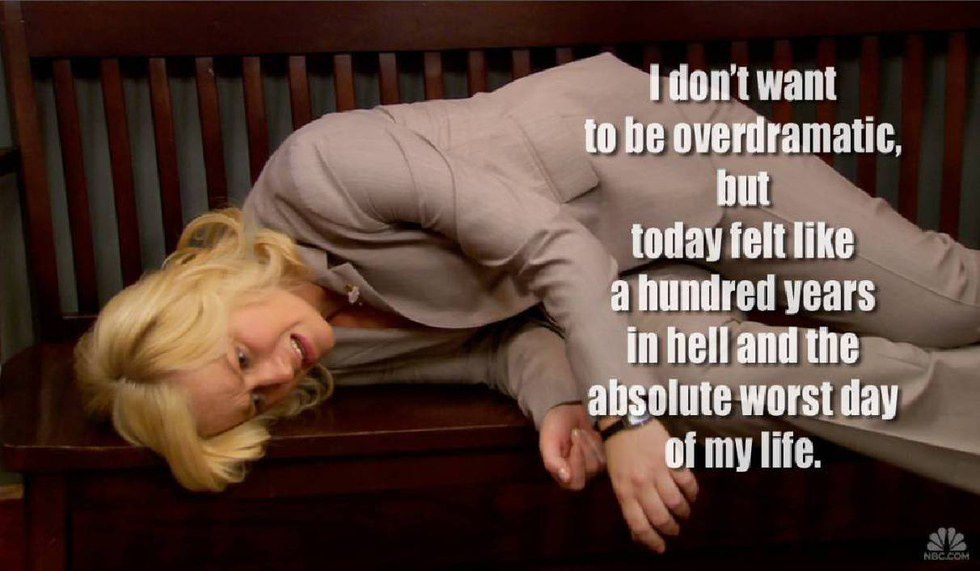 Leslie Knope is such a relatable character. From positively getting through the day, to feeling like you're dying- you can be every phase of Leslie Knope.