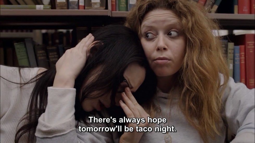 This speaks for itself. In prison, everyone is given the same beat-up bed frame with a mattress pad that's definitely seen some better days. In college, that same exact setup is disguised with a nice duvet and a throw pillow or two. Don't be fooled, the housing department definitely models their interior decorating after the bunks in OITNB.