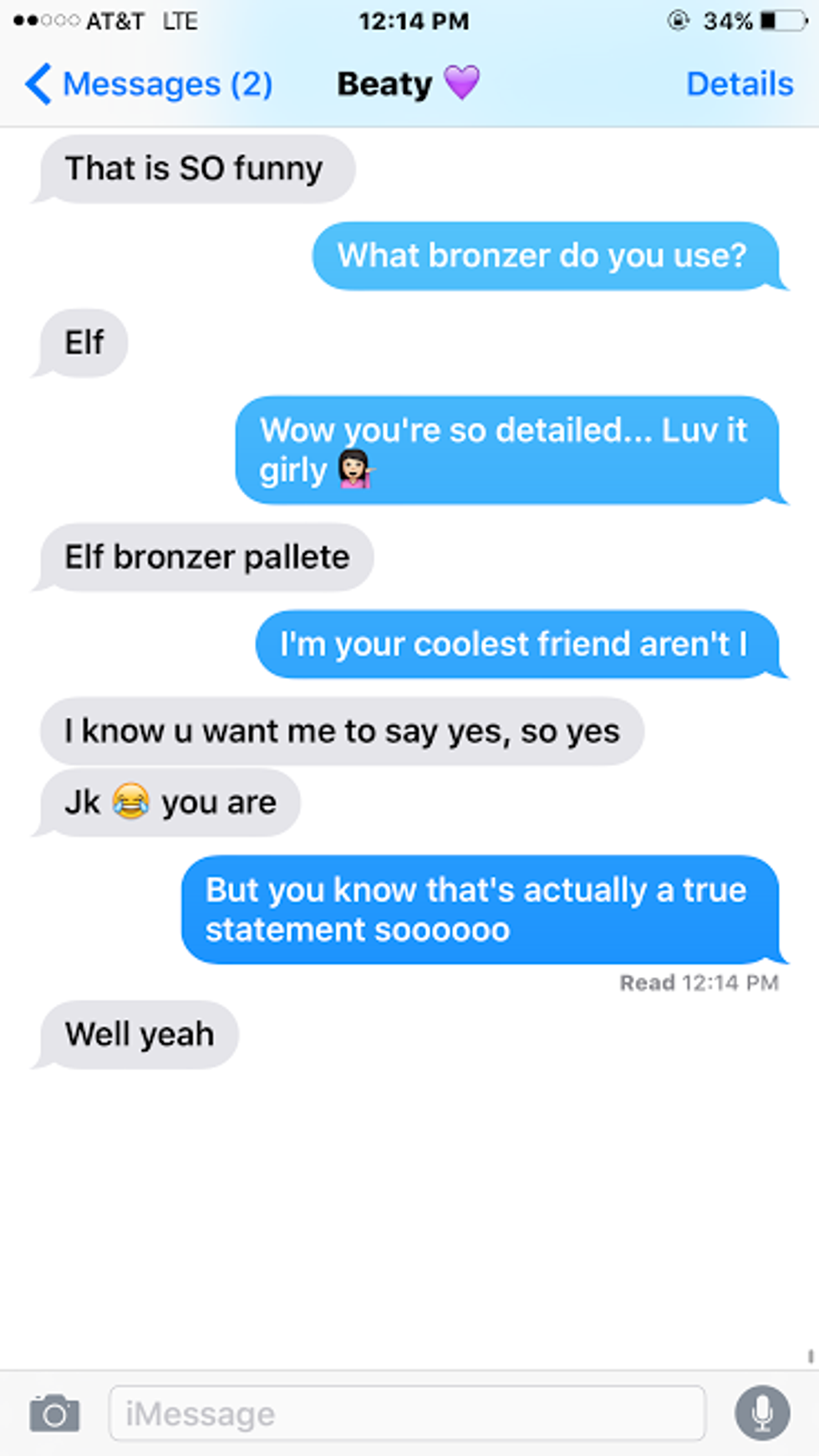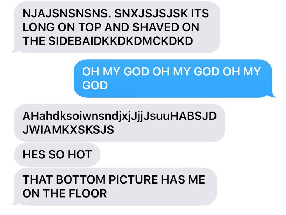 Whether it be about a hot guy, a fun new experience, some girl who is just trying to push your limits, or just excitement to be talking to them, an all caps text will usually follow. This pretty much happens on a daily basis.