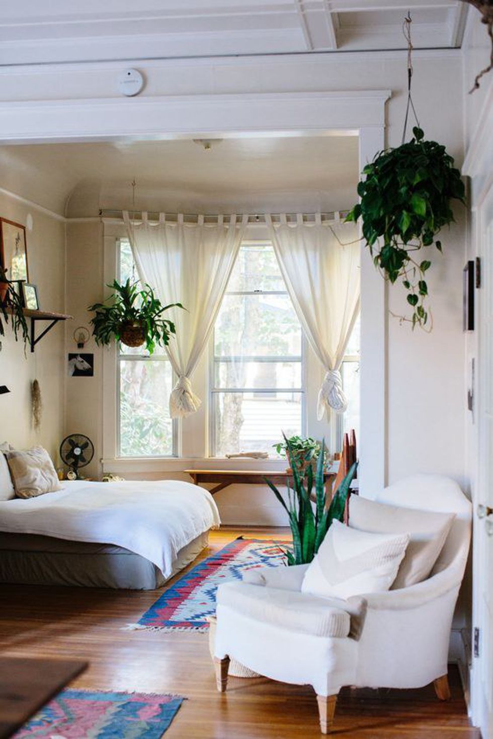 By adding a smaller rug to your space you are immediately sectioning off space for your bed which adds a sense organization alongside simple decor.