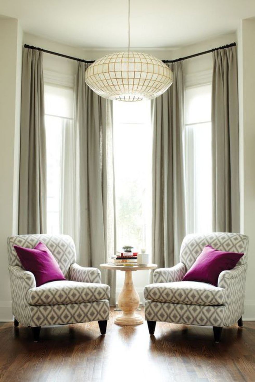Hanging your curtains higher up on the window frame will give the illusion of larger/longer windows that add more light to your room.
