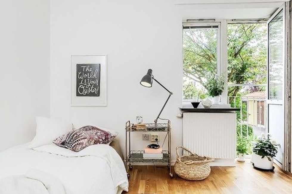 When living in a small space organization is key. If you have random miscellaneous things lying around your room just put it all in baskets or in under the bed storage bins. Doing this will de-stress the space, leaving it way more accessible.