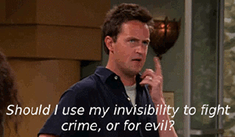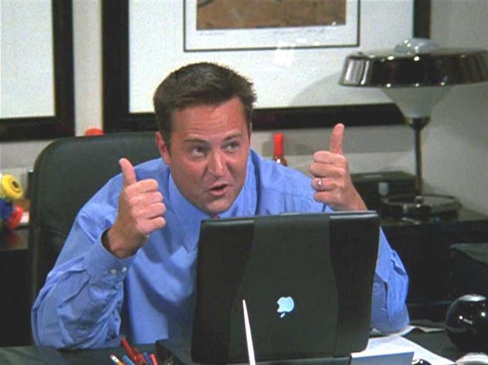 That's the great thing about being Chandler Bing, you don't care if you're awkward or lame as long as you've got your friends there to laugh with/at you.