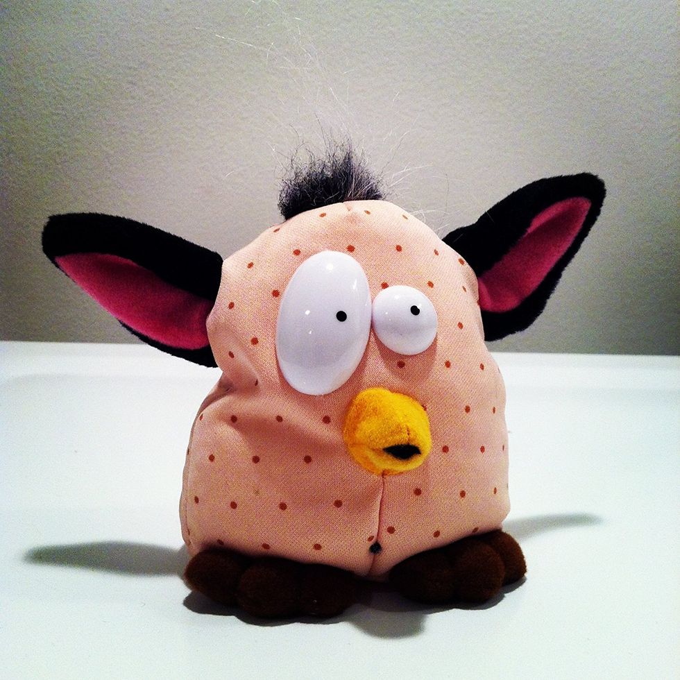 I don't know if this guy is supposed to resemble an actual Furby, which I had when I was little, or not but it's just as creepy looking. According to the seller's description, "This interactive toy has been exposed, Before his fame in the nude he did pose. When people started gawking, He finally stopped talking, And the public realized they've been hosed!"