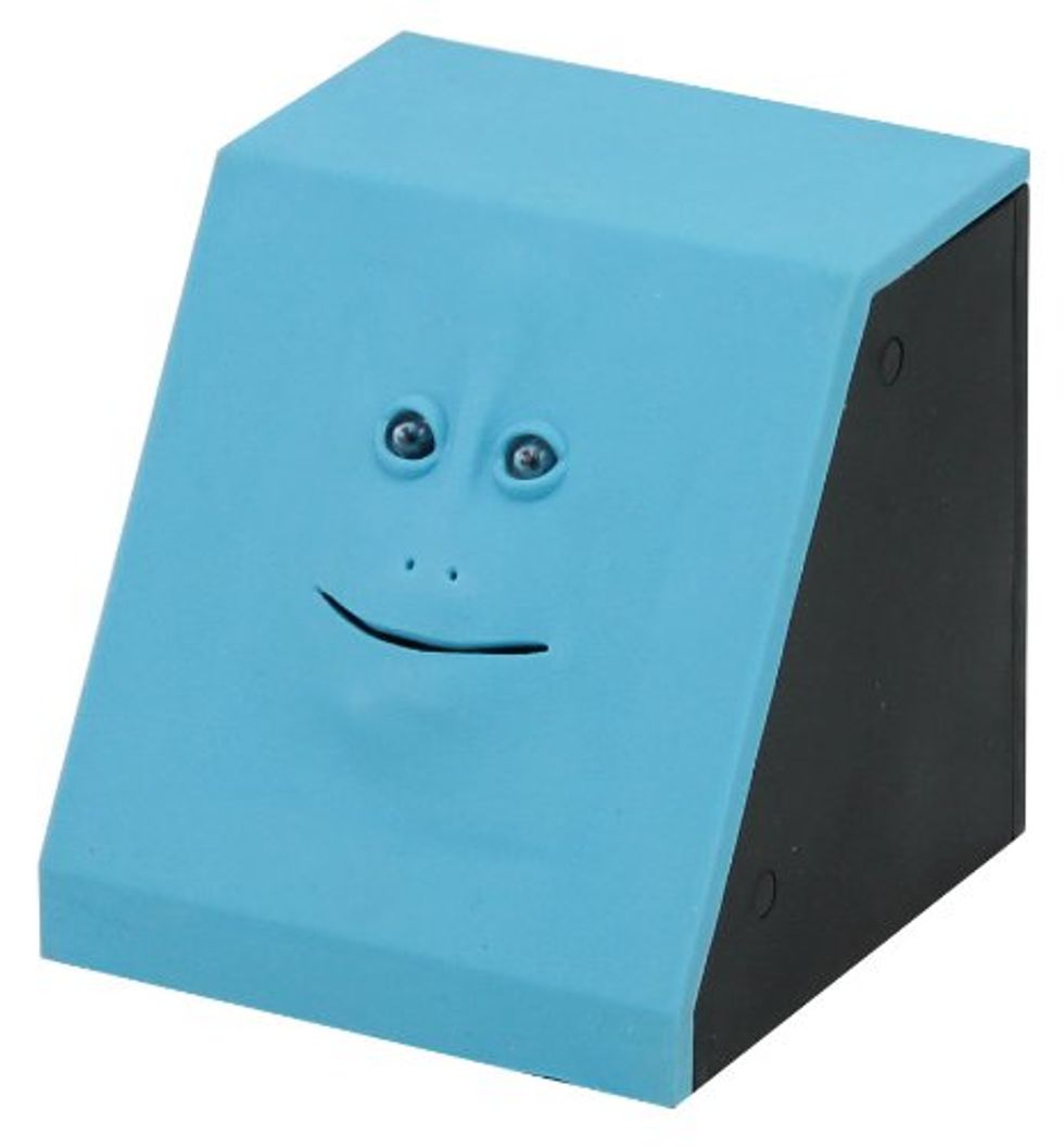 Okay, I have def. seen these before and I can still say even now that this bank is still super creepy! Why have something with a face protruding it? I don't know if I would even get this for any kid. It apparently talks while you give it coins. Why not just invest in a non-creepy, non-talkable bank? You can get your creepy bank for only $20.10, if you get a different color it may cost more but the blue one is that much.