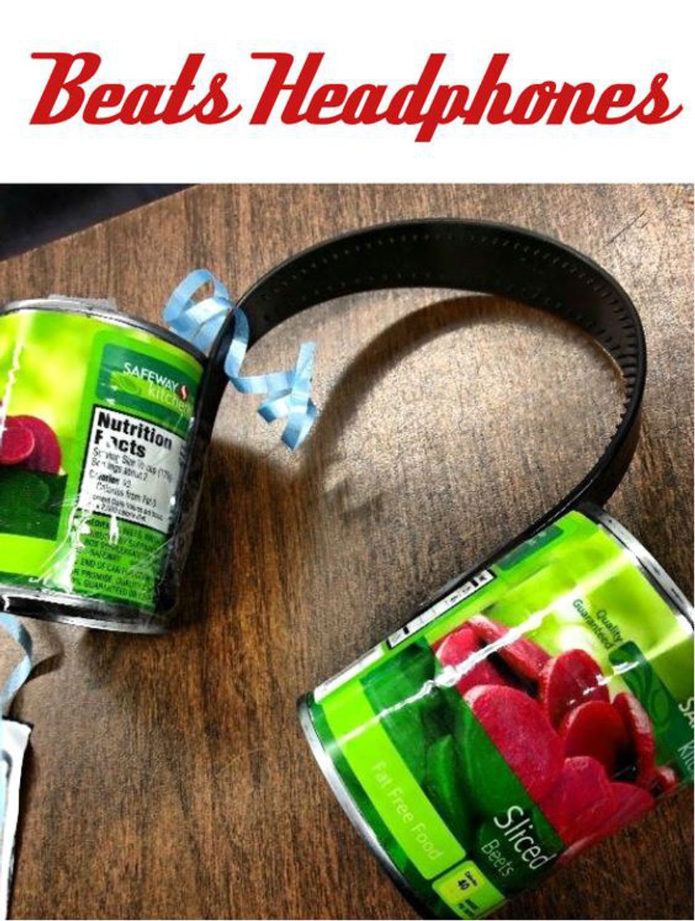With a headband and some cans of beets, the lucky winner of this gift will be styling some pretty neat headphones!