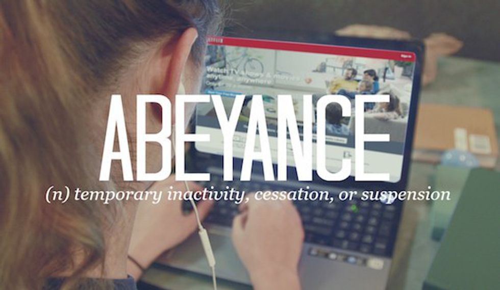 [uh-bey-uhns] : temporary inactivity, cessation, or suspension.